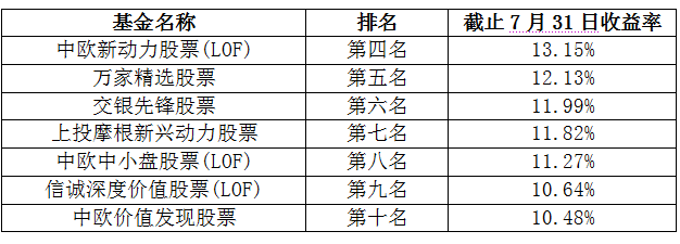 上海地區(qū)基金公司旗下基金2012年7月業(yè)績排名觀察