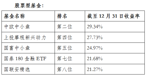上海市基金同業(yè)公會(huì)對(duì)上?;鸸?012全年各類(lèi)基金排名進(jìn)行了觀察和總結(jié)。2012年以來(lái),上?;鸸緲I(yè)績(jī)始終優(yōu)異,在各類(lèi)別排名中均有不俗表現(xiàn),涌現(xiàn)出了一大批業(yè)界公認(rèn)的明星基金,如獲得股票型第二和第四位的中歐中小盤(pán)、上投摩根新興動(dòng)力,混合型的中銀收益,債券型的天治穩(wěn)健雙贏,貨幣型的長(zhǎng)信收益B,QDII型的華寶興業(yè)海外中國(guó)等。具體排名如下:
