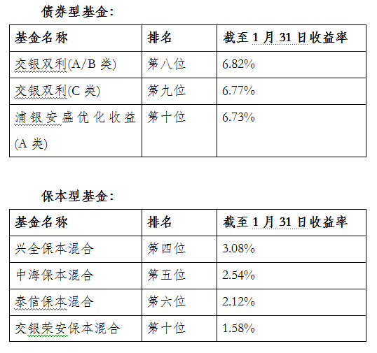 上海基金公司旗下基金1月份業(yè)績(jī)排名觀察