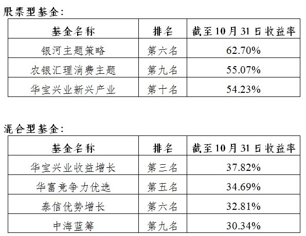 上?;鸸酒煜禄鸾衲暌詠?lái)業(yè)績(jī)排名觀察(截至10.31)