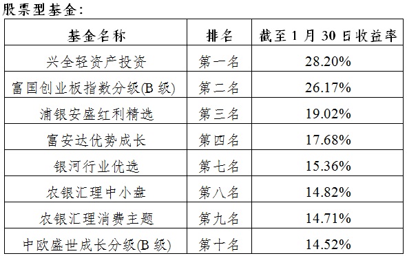 今年以來業(yè)績排名觀察(截至1.30)