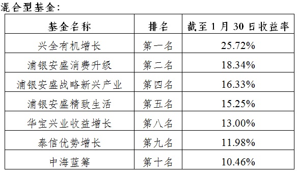 上?;鸸酒煜禄鸾衲暌詠順I(yè)績排名觀察(截至1.30)