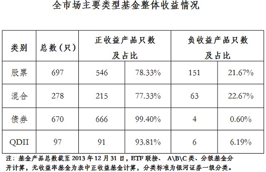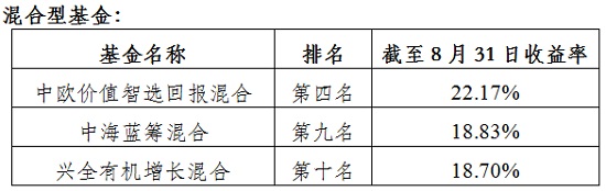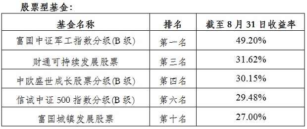 公會(huì)對上?;鸸窘衲暌詠斫刂?月31日各類型開放式基金的排名情況及整體收益情況進(jìn)行了觀察,隨著8月份主要市場指數(shù)的持續(xù)上揚(yáng),股票型和混合型基金正收益比例再攀新高,接近八成取得正收益。債券型基金QDII型基金絕對收益情況持續(xù)優(yōu)異。具體排名情況如下: