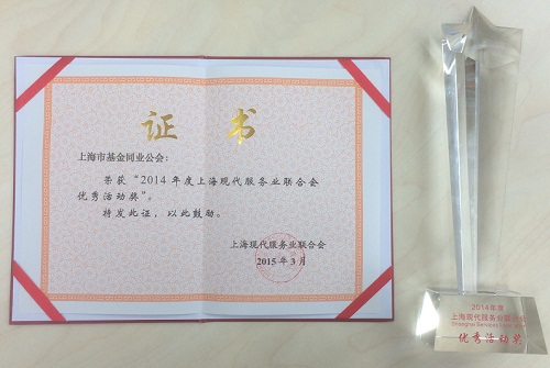 公會(huì)榮獲2014年度上?,F(xiàn)代服務(wù)業(yè)聯(lián)合會(huì)優(yōu)秀活動(dòng)獎(jiǎng)