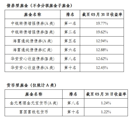 上海基金公司旗下基金今年以來業(yè)績排名觀察(截至03.31)