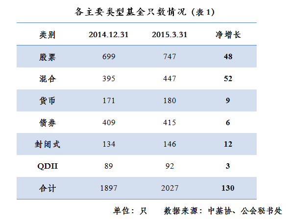 2015年第1季度市場(chǎng)各類型基金情況概覽