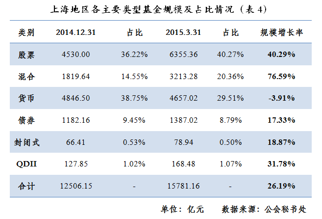 二、上海地區(qū)第1季度各類型基金規(guī)??傮w情況