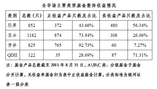 公會(huì)對(duì)上海基金公司截至今年8月31日各類型開放式基金的絕對(duì)收益排名及整體收益情況進(jìn)行了觀察,7月份主要市場(chǎng)指數(shù)震蕩下行,跌幅較大,上海地區(qū)基金公司所管理的基金在被動(dòng)指數(shù)型、混合型、QDII型排名上有一定優(yōu)勢(shì)。具體排名情況如下: