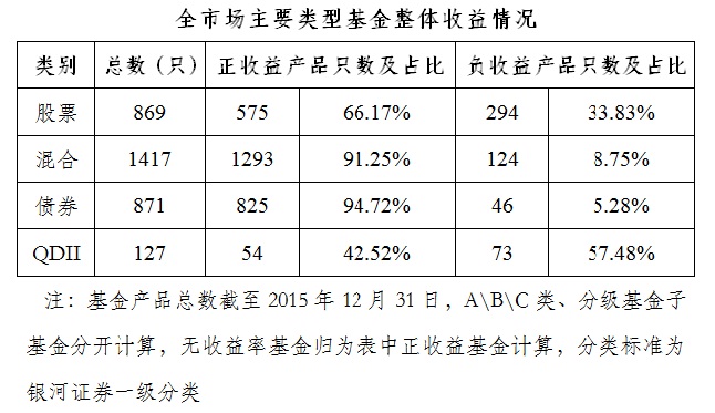 公會對上?;鸸窘刂?span lang="EN-US">2015年12月31日各類型開放式基金的絕對收益排名及整體收益情況進行了觀察,全年主要市場指數(shù)先漲后跌,波幅較大,上海地區(qū)基金公司所管理的基金在權(quán)益類排名上有一定優(yōu)勢。具體排名情況如下: