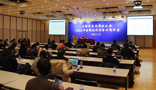 1月21日下午,公會(huì)2016年度第一場(chǎng)專題講座在寒冷的冬日如期舉辦。此次講座特邀興業(yè)銀行首席經(jīng)濟(jì)學(xué)家、華福證券首席經(jīng)濟(jì)學(xué)家魯政委解讀分析當(dāng)前經(jīng)濟(jì)形勢(shì)及宏觀政策指向。來自上海地區(qū)資產(chǎn)管理行業(yè)的100余位從業(yè)人員冒雨前來聆聽首席的解讀與分析。