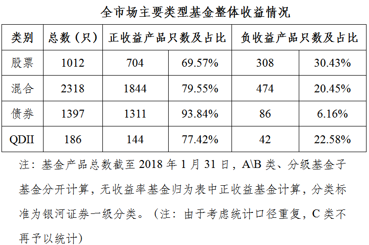 公會(huì)對(duì)上?;鸸窘刂?018年1月31日各類型開放式基金的絕對(duì)收益排名及整體收益情況進(jìn)行了觀察,1月份主要市場(chǎng)指數(shù)維持震蕩上升格局,上海地區(qū)基金公司所管理的各類型基金排名較上月有所變化。公會(huì)將上海地區(qū)基金公司所管理的產(chǎn)品在相應(yīng)分類中全國(guó)排名前十分別列出,具體排名情況如下:
