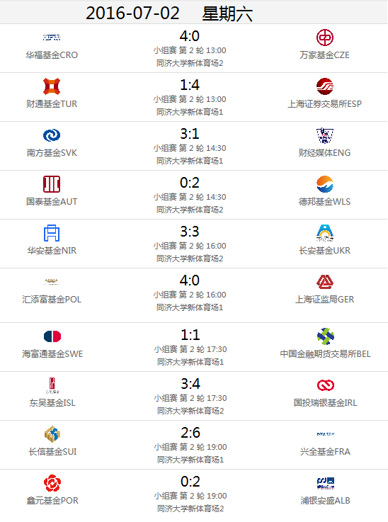 7月2日,“興全基金杯”上海市基金同業(yè)公會足球賽第二輪小組賽展開了激烈的較量。賽場上球員們精神抖擻、英姿颯爽,酣暢淋漓地享受著比賽的每一分鐘。目前賽況如下: