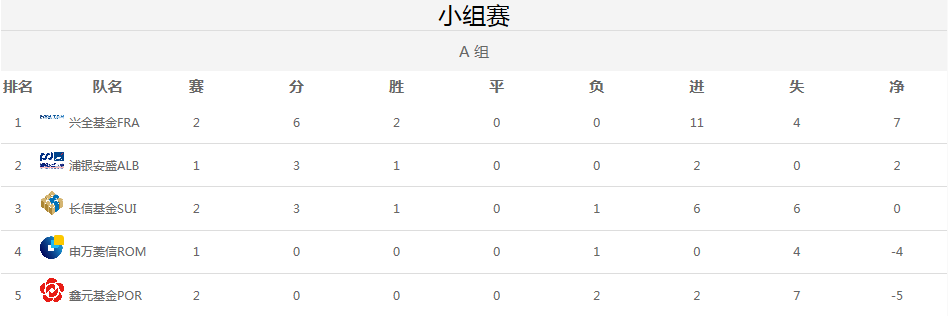 二、小組積分榜(截至第二輪)