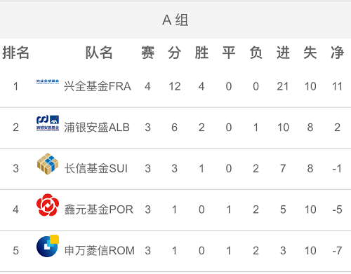 二、小組積分榜(截至第四輪)