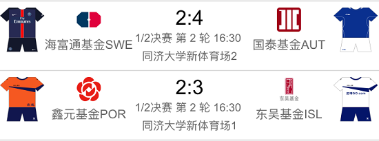 優(yōu)勝組進(jìn)入最終決賽以及三四名決賽的隊(duì)伍是:國泰基金、東吳基金、海富通基金和鑫元基金。