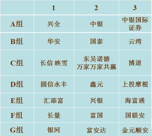 根據(jù)賽制,各參賽隊進行小組抽簽,現(xiàn)場公布了小組賽比賽對陣情況。根據(jù)賽事規(guī)則,去年冠軍申萬菱信作為種子隊進入下午淘汰賽階段,其余21支球隊分7組進行抽簽。具體抽簽結果如下: