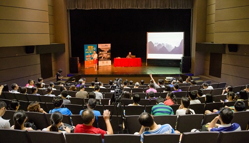 講座現(xiàn)場,燈光全暗,段岳衡先生依托輕緩的背景音樂在大屏幕上播放一幅幅令人驚嘆的攝影作品,解說著每張絕美照片以及照片背后的故事??炫?、慢拍、焦距、遠(yuǎn)景、近景,他以攝影大師的專業(yè)精神和藝術(shù)家的氣質(zhì)影響著觀眾,靈動的流水、豪邁的遠(yuǎn)山等風(fēng)光在照片上一一展現(xiàn),宛若帶領(lǐng)觀眾進(jìn)入了身臨其境的自然世界。聽著悠然、舒緩的音樂,看著國內(nèi)外美麗淡雅的自然風(fēng)光,現(xiàn)場觀眾屏住呼吸,領(lǐng)略著攝影作品的藝術(shù)氣息。