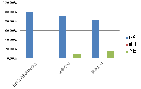 對提交股東大會表決的議案,機構投資者絕大部分投贊成票,極少反對和棄權。