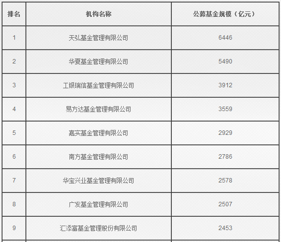 公募基金規(guī)模排名(2015年9月底)