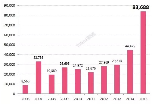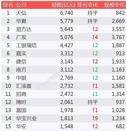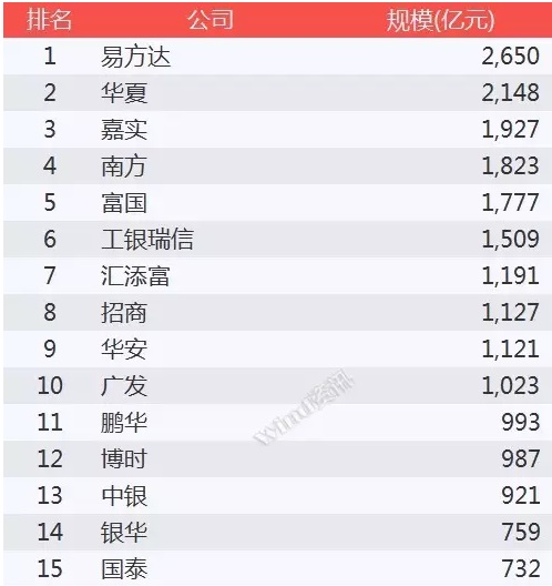 2015年,資產(chǎn)規(guī)模增加最顯著的三家公司依次是廣發(fā)、易方達(dá)、華夏基金,公募基金新增規(guī)模依次為3,767億元、3,557億元、2,669億元。