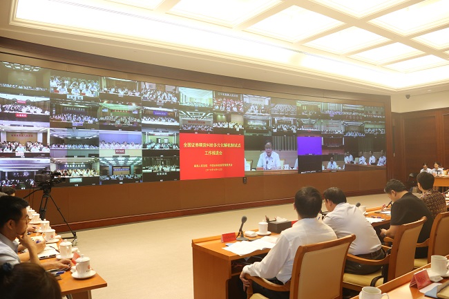 會議由最高人民法院審判委員會副部級專職委員杜萬華同志主持,中國證監(jiān)會黨委委員、主席助理黃煒同志宣讀了試點(diǎn)調(diào)解組織名單。中央政法委、司法部、中國人民銀行、銀監(jiān)會、保監(jiān)會、最高人民法院、證監(jiān)會有關(guān)部門負(fù)責(zé)同志在主會場出席會議。部分試點(diǎn)地區(qū)高級人民法院、證監(jiān)會派出機(jī)構(gòu)及試點(diǎn)調(diào)解組織代表交流發(fā)言。來自全國法院系統(tǒng)和證券期貨監(jiān)管系統(tǒng)負(fù)責(zé)同志、相關(guān)調(diào)解組織、調(diào)解員代表和證券期貨市場經(jīng)營主體代表700余人通過視頻形式參加會議。