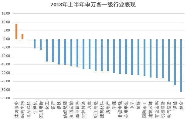 從行業(yè)板塊來看,Wind數(shù)據(jù)顯示,截至6月30日,在申萬28個一級行業(yè)下,僅有休閑服務(wù)、醫(yī)藥生物、食品飲料三個行業(yè)實現(xiàn)了正收益。