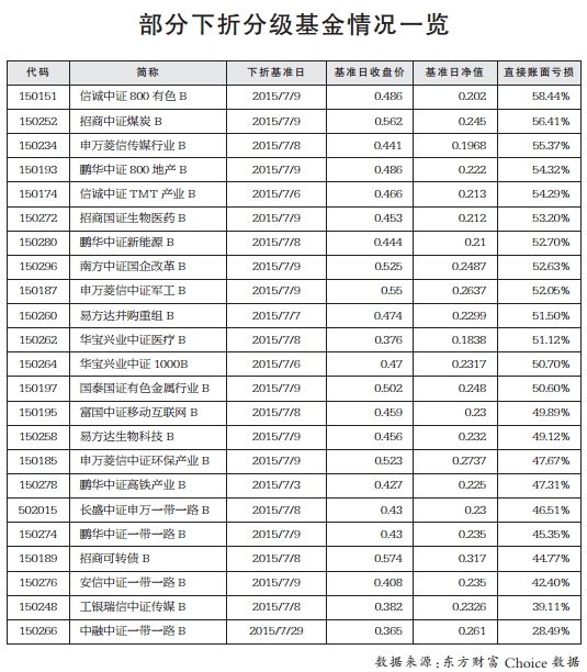 然而,當市場下跌時,分級B 的杠桿會加大,會出現(xiàn)越跌越快的情況,而很多投資者由于沒有設置止損線,最終遭遇了“下折”的巨大損失。