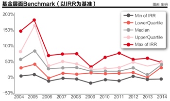 需要指出的是,由于PE基金存在著典型的J-Curve曲線特征,即基金的收益率是在長時間生命周期中逐漸釋放和上升的。在Benchmark中的體現(xiàn)則是2004-2006年的基金業(yè)績基本已經(jīng)完全釋放,但是最近幾年剛開始投資的基金,其業(yè)績尚處于J-Curve的下行階段,故幾年的統(tǒng)計數(shù)據(jù)低谷并不代表未來業(yè)績的走勢。