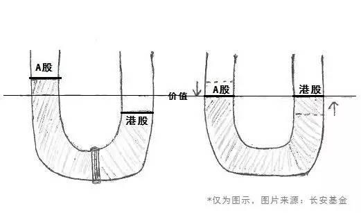 在一個(gè)底部中間被阻隔無(wú)法流通的U型管中(圖左),左邊的水位高于右邊的水位,就像以前A股的估值高于港股一樣。