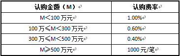 該基金A類基金份額的認(rèn)購費率隨認(rèn)購金額的增加而遞減,如下所示: