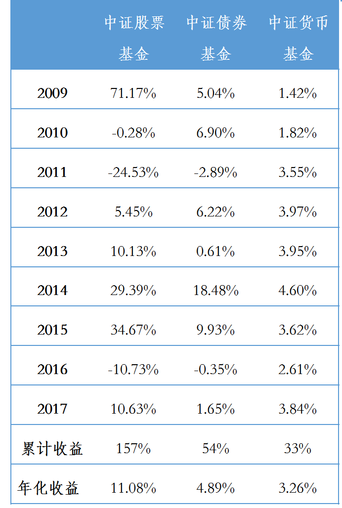 圖1:中證三類(lèi)基金指數(shù)收益對(duì)比
