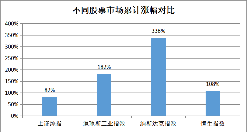 圖2:不同股票市場(chǎng)累計(jì)漲幅對(duì)比