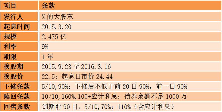 2015年9月23日換股起始,當(dāng)天X的收盤價是27.78元,高于初始換股價23.5%。在整個換股期,X的均價是32.76元,高于初始換股價45.6%。