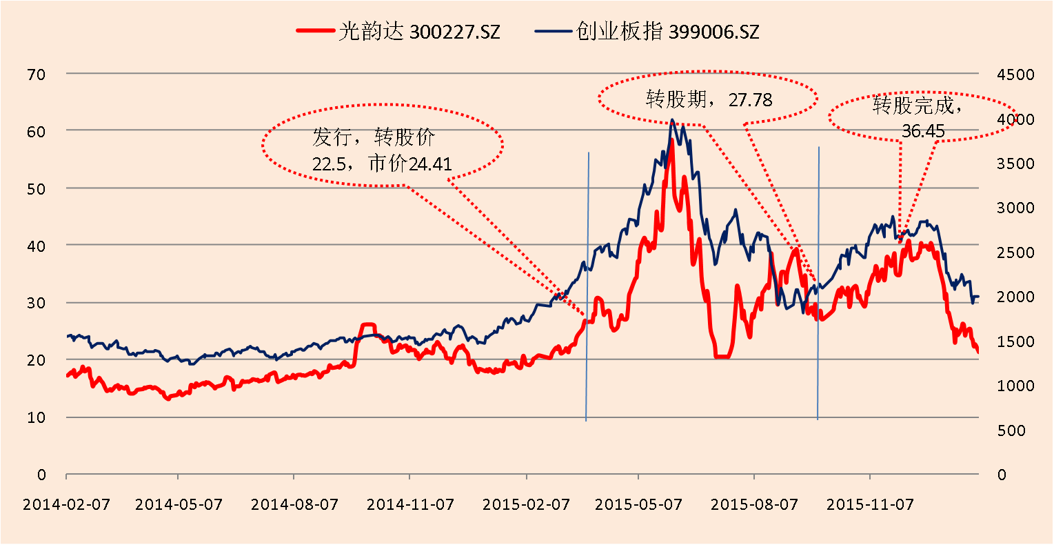 從3月20日起息,到12月2日換股完成,在不到9個月的時間里,若A可交換債的投資人以上述換股期內(nèi)均價換股并變現(xiàn),獲得了約50%的投資收益。(該換股均價為直觀描述換股收益而假設(shè)的平均水平,不能代表投資者實際換股價。)