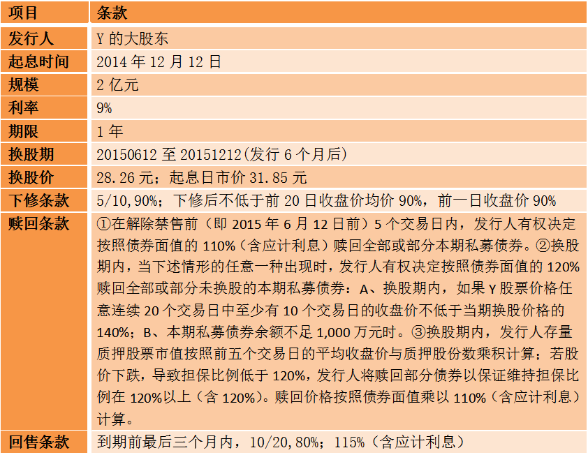 2015年6月5日,Y發(fā)布公告稱:控股股東決定全部贖回本期私募債券。隨后,6月12日B可交換債被發(fā)行人全部贖回,贖回價格為債券面值的110%。