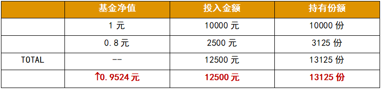 如果,在0.8元時(shí)按照原投入金額的25%進(jìn)行補(bǔ)倉(cāng)(也就是2500元),那么基金凈值上升到0.9524元以上就能回本。此種方法中,控制加倉(cāng)比例較為重要。