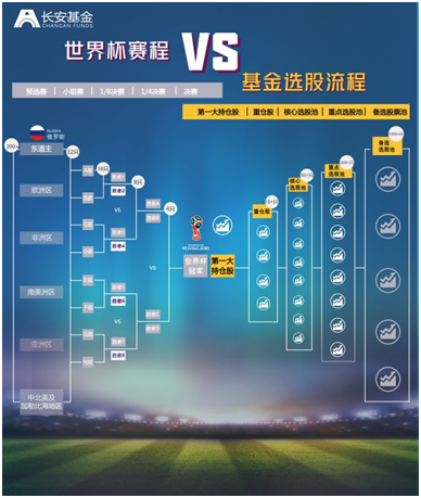 伴隨著世界杯的進(jìn)行,小安突然發(fā)現(xiàn)其實(shí)基金公司的選股流程與世界杯冠軍的晉級(jí)之路頗有些異曲同工之處。世界杯冠軍要從預(yù)選賽、小組賽,1/8決賽、1/4決賽,半決賽、決賽一路斬關(guān)過將最終捧得大力神杯。而基金公司選出最終的重倉(cāng)股其實(shí)也要經(jīng)過層層篩選的過程,從最初1000多只備選股票池中挑選出重倉(cāng)股。小安今天就給大家講講世界杯賽程與基金公司選股之間的聯(lián)系。當(dāng)然每家基金公司的選股流程還是會(huì)根據(jù)實(shí)際情況略有不同,小安的一家之言僅供各位參考。