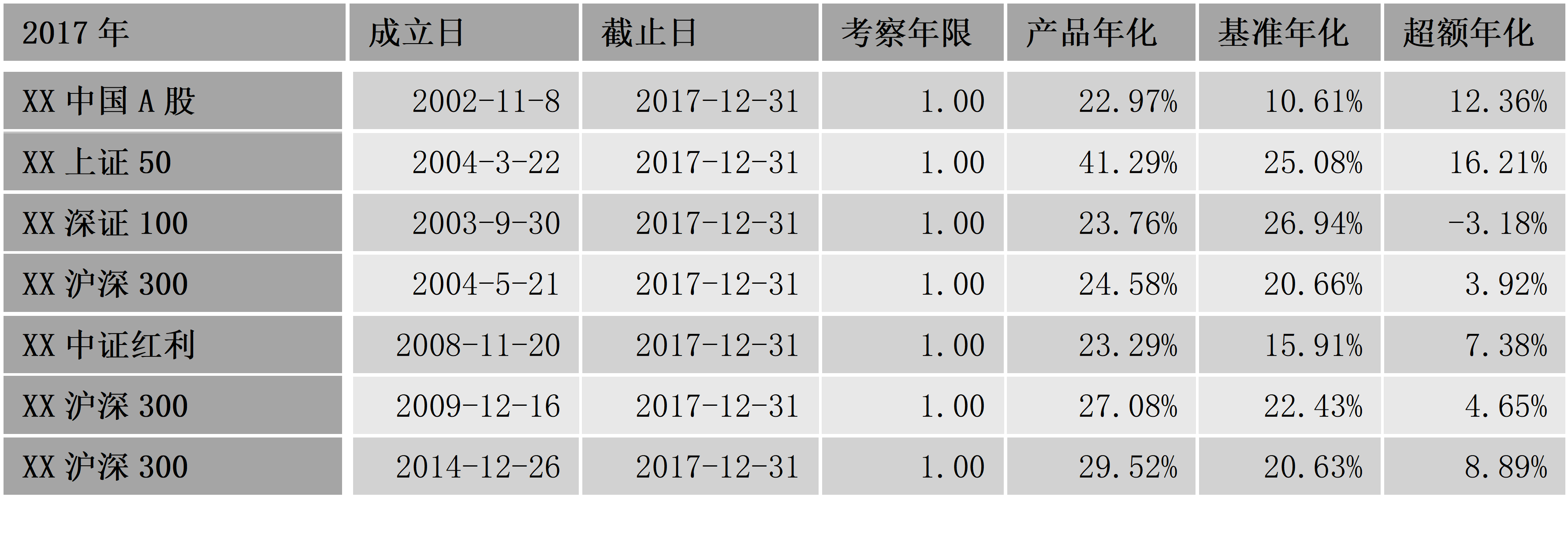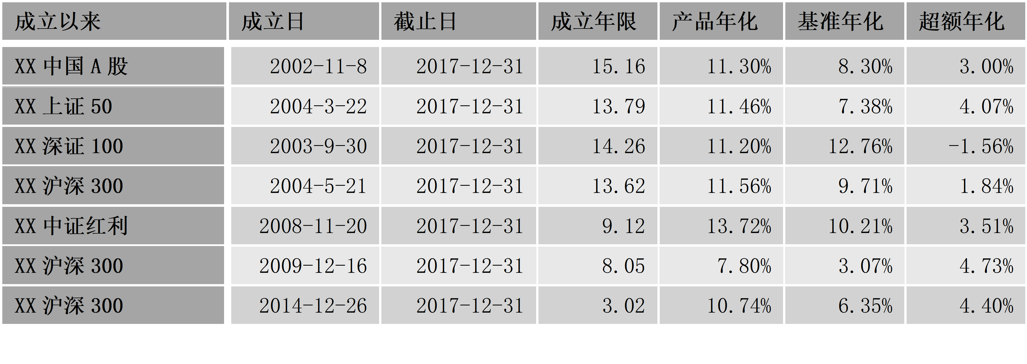 考察市場(chǎng)上成立最早的幾款指數(shù)增強(qiáng)產(chǎn)品,它們的成立年限多在10年以上,跟蹤的指數(shù)多為上證50、滬深300、深100這樣的藍(lán)籌指數(shù)(在當(dāng)時(shí)可能對(duì)市場(chǎng)整體的覆蓋度和代表性更高)。數(shù)據(jù)顯示,絕大部分產(chǎn)品都實(shí)現(xiàn)了中長(zhǎng)期的超額收益,平均年化在1.8%-4.1%之間,表明指數(shù)增強(qiáng)的策略在A股市場(chǎng)上確實(shí)奏效。