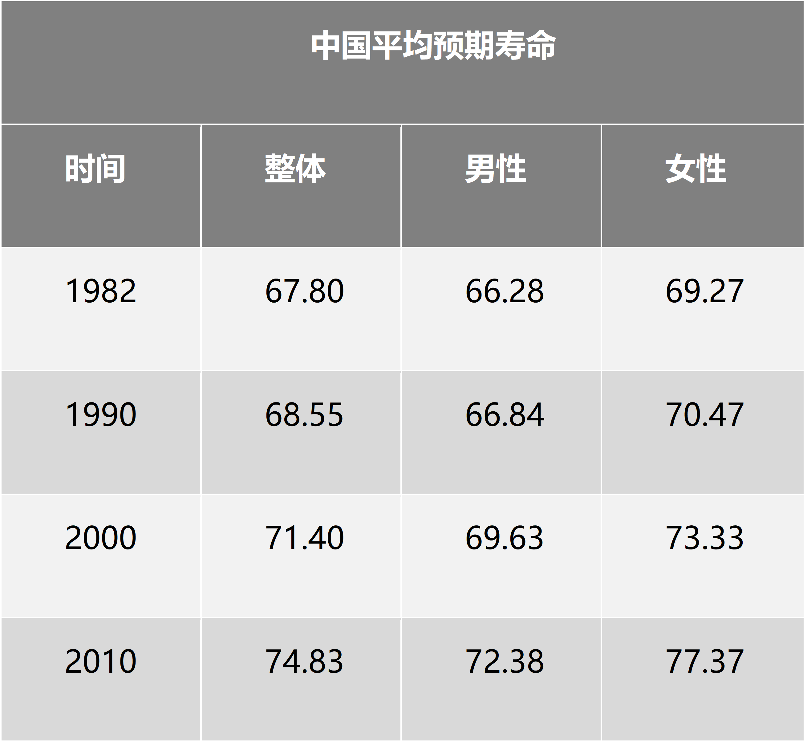 到了現(xiàn)代,情況開始好轉(zhuǎn)。隨著社會經(jīng)濟的發(fā)展和醫(yī)療水平的改善,人類的壽命已經(jīng)開始大幅延長。建國初期的1950年,我國的人均壽命只有40.76歲,到了2010年為74.83歲,到了2015年,這一數(shù)字已經(jīng)突破76歲,達到76.34歲。幾十年間,人均預(yù)期壽命呈直線上升之勢,2000年至今并沒有顯現(xiàn)出增長放緩的跡象。