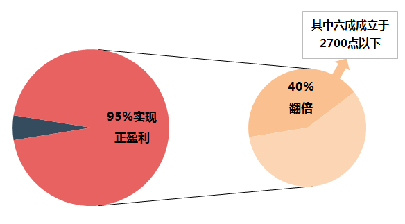體到基金產品,成立十年以上的255只混合型基金中95%實現了正收益,其中四成的基金收益翻倍,這四成中60%的基金成立于滬指2700點以下!(歷史業(yè)績不代表未來表現)