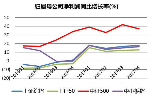 首先,作為中等市值股票的代表性指數,其2007-2017年歸母凈利潤復合增速達21%,尤其在2016年之后, 增速保持領先。從成長階段而言,中等市值公司既度過了成長的風險期又沒有到達瓶頸期,恰好處于穩(wěn)定成長期。