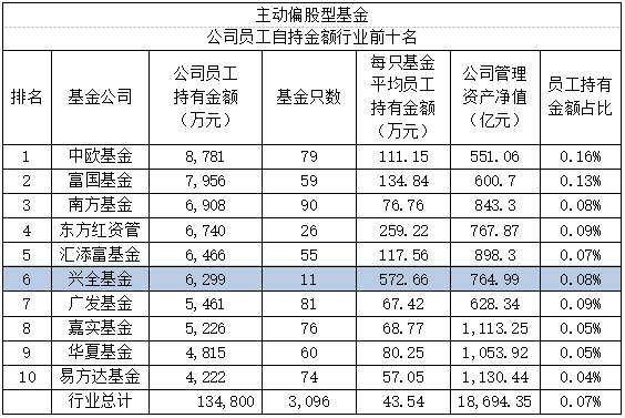 哪些基金公司的基金讓自己的員工更信任呢?我們從2018年基金中報來看,通過每只基金的“管理人員工持有份額”乘上基金單位凈值來統(tǒng)計,以主動偏股型基金為例,員工持有金額行業(yè)排名前十的,基本上都是業(yè)內(nèi)比較知名的基金公司;其中,興全基金以6,299萬排名行業(yè)第6。如果將各公司員工持有金額除以基金只數(shù)來看,興全旗下基金平均員工持有金額高達(dá)572.66萬,在行業(yè)內(nèi)排名第2。從另外一個角度來看,興全基金員工人數(shù)約250人,以約6,300萬的員工持有金額統(tǒng)計,興全的每個員工投資在公司旗下基金達(dá)25萬以上,顯示興全基金的員工是非常相信公司的管理能力的。