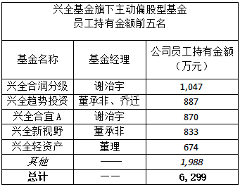 興全基金旗下哪些主動偏股型基金是員工持有比較多的呢?前五名分別是興全合潤、興全趨勢、興全合宜、興全新視野和興全輕資產(chǎn),第一名的興全合潤更是超過千萬呢!看來謝治宇和董承非不僅是業(yè)內(nèi)的投資大佬,也是最受公司員工信任的基金經(jīng)理了。