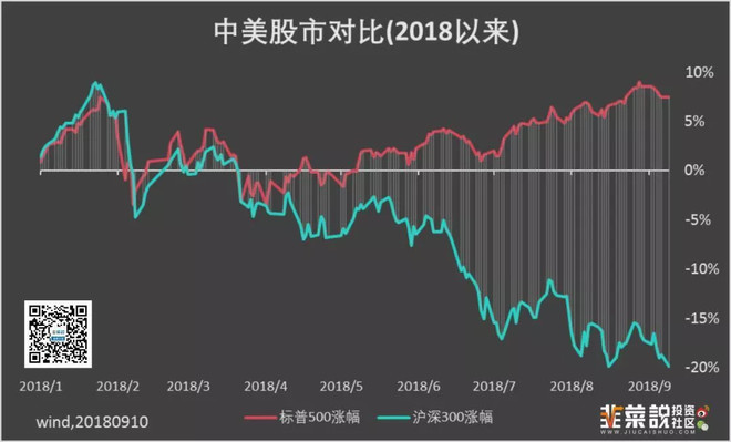 3、考慮到美股今年已創(chuàng)最長牛市記錄,而反觀國內(nèi)A股市場卻是與美國市場背道而馳,在低位區(qū)域震蕩不斷。今年以來,滬深300跑輸標普500超過25%,自三月份全球股市第二波回撤以后,剪刀差開始拉大。