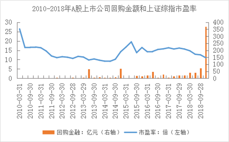 從這幾年市盈率高低與回購金額也可發(fā)現(xiàn),當市盈率從階段高位回落時,回購金額往往相比上一年顯著增加。