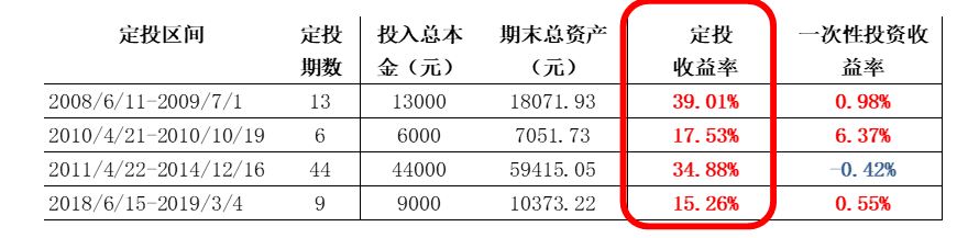 在指數(shù)沒有收獲的區(qū)間內(nèi),定投卻收獲頗豐。
