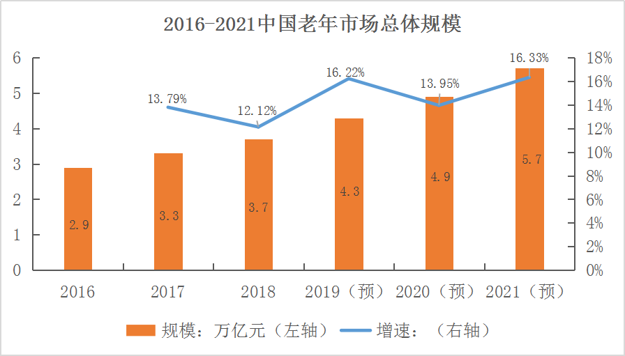 據(jù)艾媒咨詢,2018年我國(guó)“銀發(fā)經(jīng)濟(jì)”相關(guān)產(chǎn)業(yè)總體規(guī)模超過(guò)3.7萬(wàn)億元,預(yù)計(jì)未來(lái)幾年仍將維持快速增長(zhǎng)。