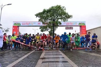 因?yàn)樘鞖獾木壒?,比賽推遲半小時(shí),在9點(diǎn)半正式開始。隊(duì)長KK,作為華寶興業(yè)牛犇隊(duì)的首發(fā)隊(duì)員,在發(fā)令槍響之后第一個(gè)奔出跑道。臺(tái)風(fēng)不懼暴雨不怕,有伙伴們的守候,心中依然是旭日陽光。