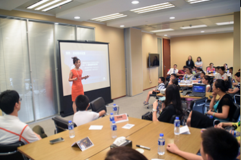 活動(dòng)的第一部分,長(zhǎng)安基金市場(chǎng)營(yíng)銷(xiāo)部副總經(jīng)理曹玫女士向在場(chǎng)的家長(zhǎng)及孩子們介紹基金公司的日?;具\(yùn)作情況。長(zhǎng)安宏觀策略混合基金的基金經(jīng)理欒紹菲先生則與到場(chǎng)來(lái)賓進(jìn)行投資心得的交流與互動(dòng)。