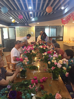上投摩根手工社的同事們一對(duì)一,手把手教老人插花。老人們欣賞著自己的作品,心里都樂(lè)開(kāi)了花。上投摩根員工代表為老人和養(yǎng)老院送上慰問(wèn)品。